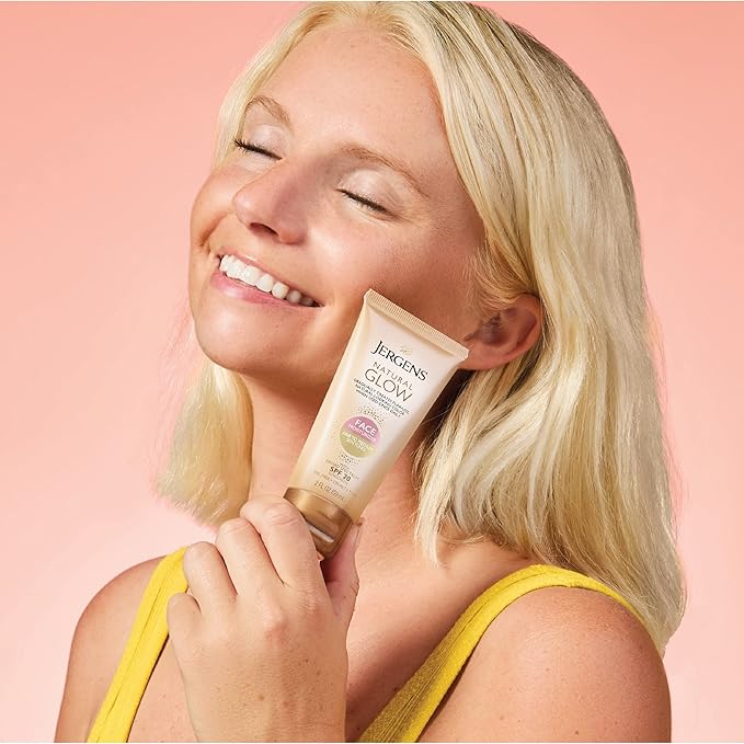 - SELF TANNING FACE SUNSCREEN - With Jergens Daily Moisturizer's blend of nutrients and skin-tone enhancers, expect a beautiful, natural-looking facial tan within a week; Try going makeup free in 7 days.