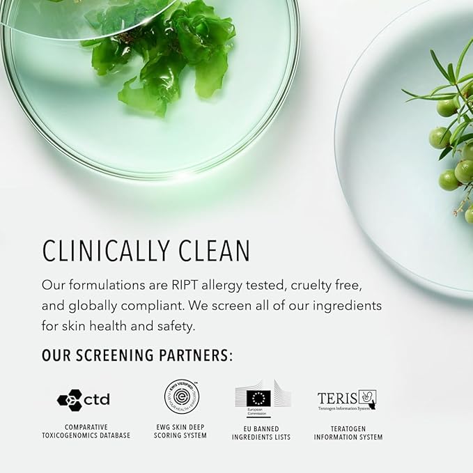 - Clinically Clean: Free from genotoxins, parabens, phthalates, sulfates, and harmful fragrance. Our formulations are RIPT allergy tested, cruelty free, Reef-Safe and globally compliant. We screen all of our ingredients for skin health and safety