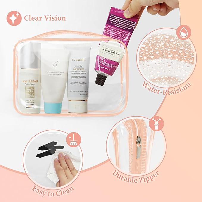 - 【Clear Makeup Bags】The transparent design allows for quick and easy identification of contents, making it perfect for travel, daily use, and organization. It keeps your travel accessories neatly stored while reducing the risk of spills or leaks during your journey.