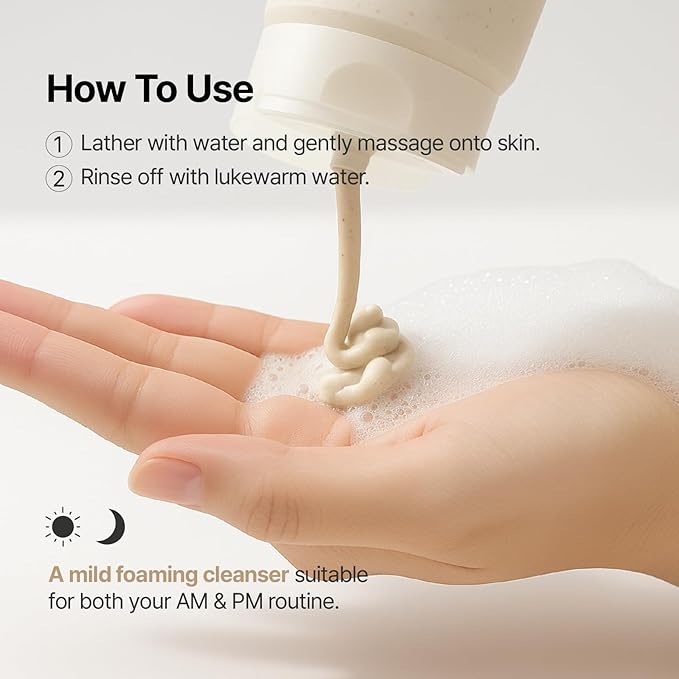 - Soft & Creamy Lather – Creates a rich micro-foam that cushions the skin while cleansing, combining gentle exfoliation with a creamy, luxurious texture for a balanced clean.