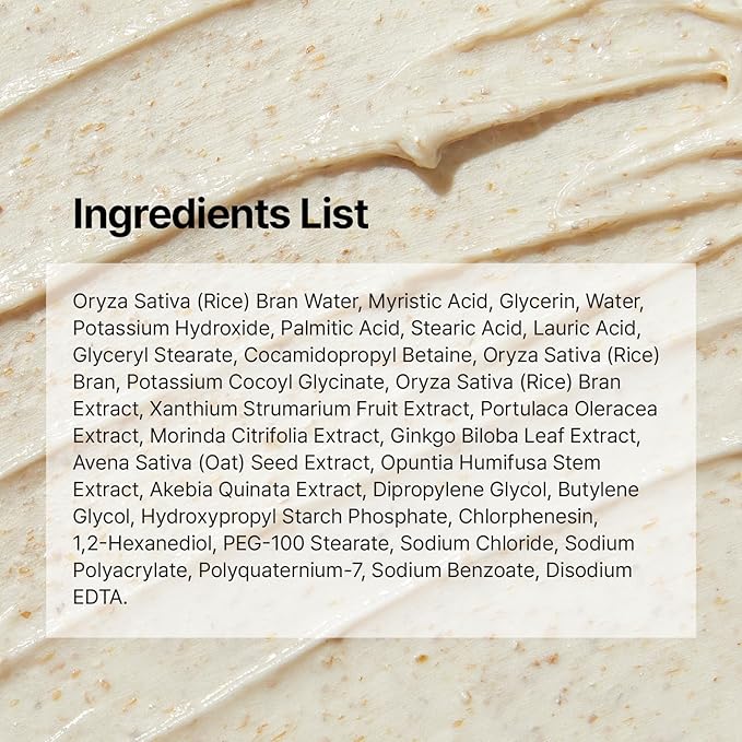 - Daily Rice Bran Scrub Foam – Designed with finely milled rice bran particles to gently lift away impurities and excess sebum from pores, delivering clarity and smoothness without irritation.