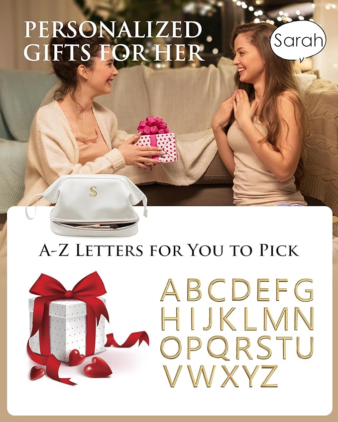 Birthday Gifts for Women, Initial Makeup Bags for Teens Girls, Double Layer Cosmetic Bag with Makeup Brush Organizer, Travel Toiletry Bag, Maid of Honor Gifts-Travel Gift For Female