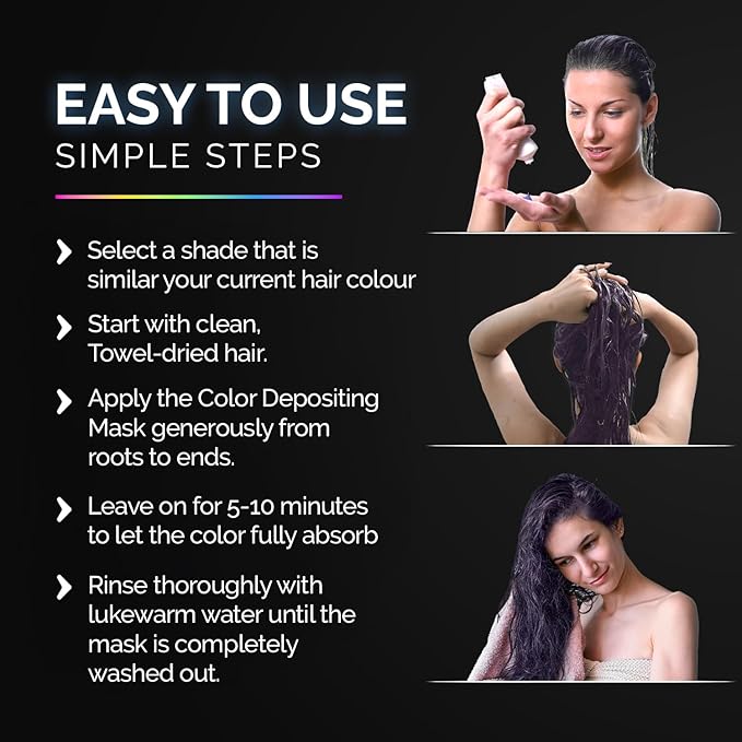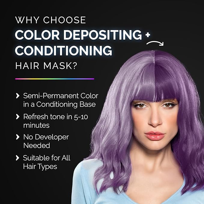 - QUICK, SIMPLE APPLICATION AT HOME: Achieve stunning, salon-worthy results in just minutes with depositing hair mask. Apply generously on towel-dried, pre-shampooed hair, leave for 5-10 minutes to allow pigments to set, and rinse for super vibrant, soft purple locks.