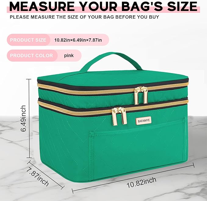 - Large Capacity: Sized at 10.8 x 7.8 x 6.4 inches, the BAFAMYE Makeup Bag provides ample space to fit all your makeup essentials and tools without any hassle