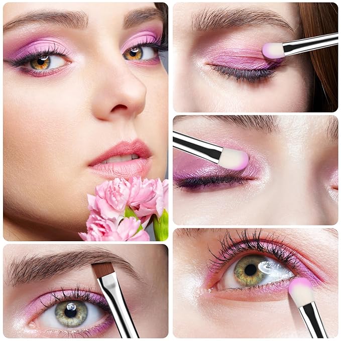 - 『Professional Eyeshadow Makeup』Perfect for applying shade, define, blend & smudge. This basic eyes kit is ideal for all over eye makeup application. This essential makeup brush set includes eye shadow brushes, eye liner, eye pencil and blending brush.
