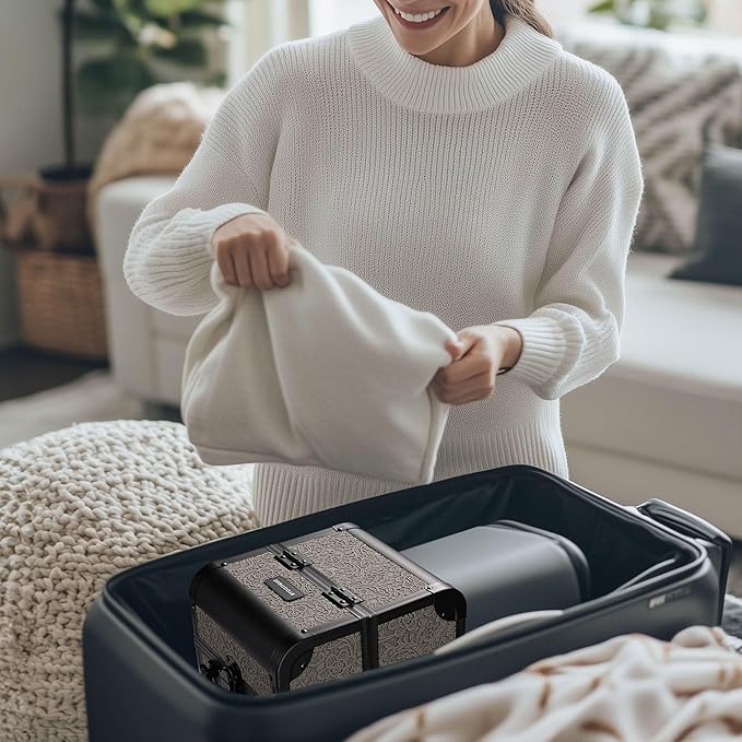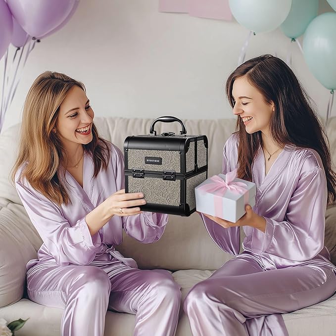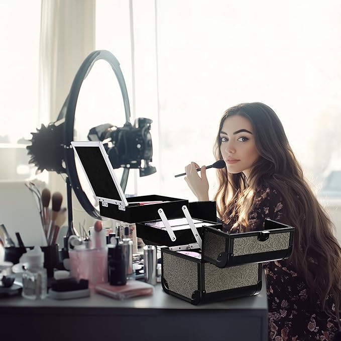 - Built-in Mirror & Extendable Trays - Open the cosmetic storage cases to reveal a flip-up mirror and 2 extendable trays inside, ideal for storing your makeup essentials such as lipsticks, compressed powders, nail polishes, and small jewelry, along with a bottom space for holding liquid foundation and small bottles