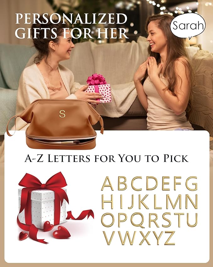 Women Gifts, Personalized Makeup Bag, Monogrammed Gifts, Initial Double Layer Cosmetic Bag with Makeup Brush Organizer, Travel Toiletry Bag, Gifts for Friends Female Mom, Teen Girl Gifts