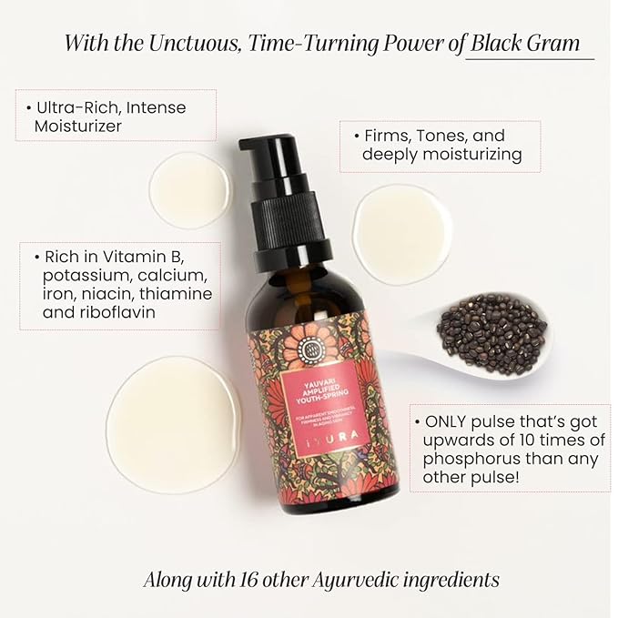 iYURA Yauvari Amplified Youth Spring—Face & Neck Moisturizer for Dry to Very Dry/Mature Skin | Firms the Look of Cheeks, Jowls & Neck | Pro-Aging, Natural Face Oil with Black Gram | 1.69 fl oz (50 ml)