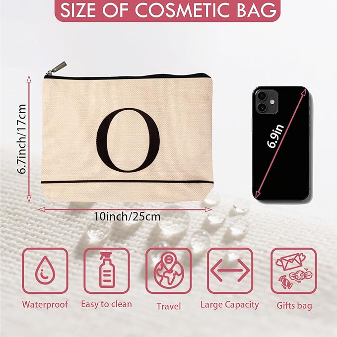 Letter A-Z Initial Personalized Makeup Bags, Birthday Gifts for Women, Monogrammed Gifts for Women Mom Sister Best Friend Bride Bridesmaid, Mothers Day, Christmas, Small Travel Cosmetic Bag (O)