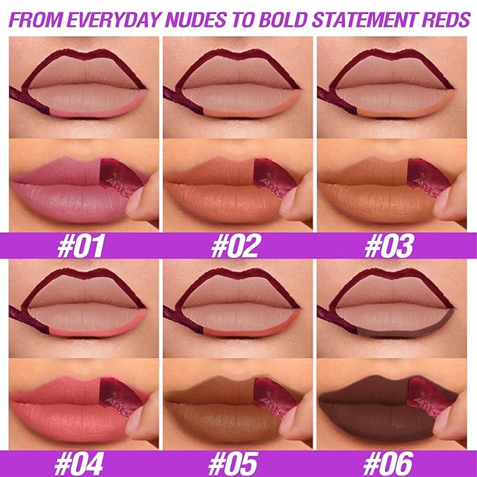 - 6 Versatile Shades for Every Skin Tone: From everyday nudes to dramatic berries, this set includes six universally flattering shades to match diverse skin tones and occasions. Mix and layer with lip gloss, balm, or lipstick for custom looks.